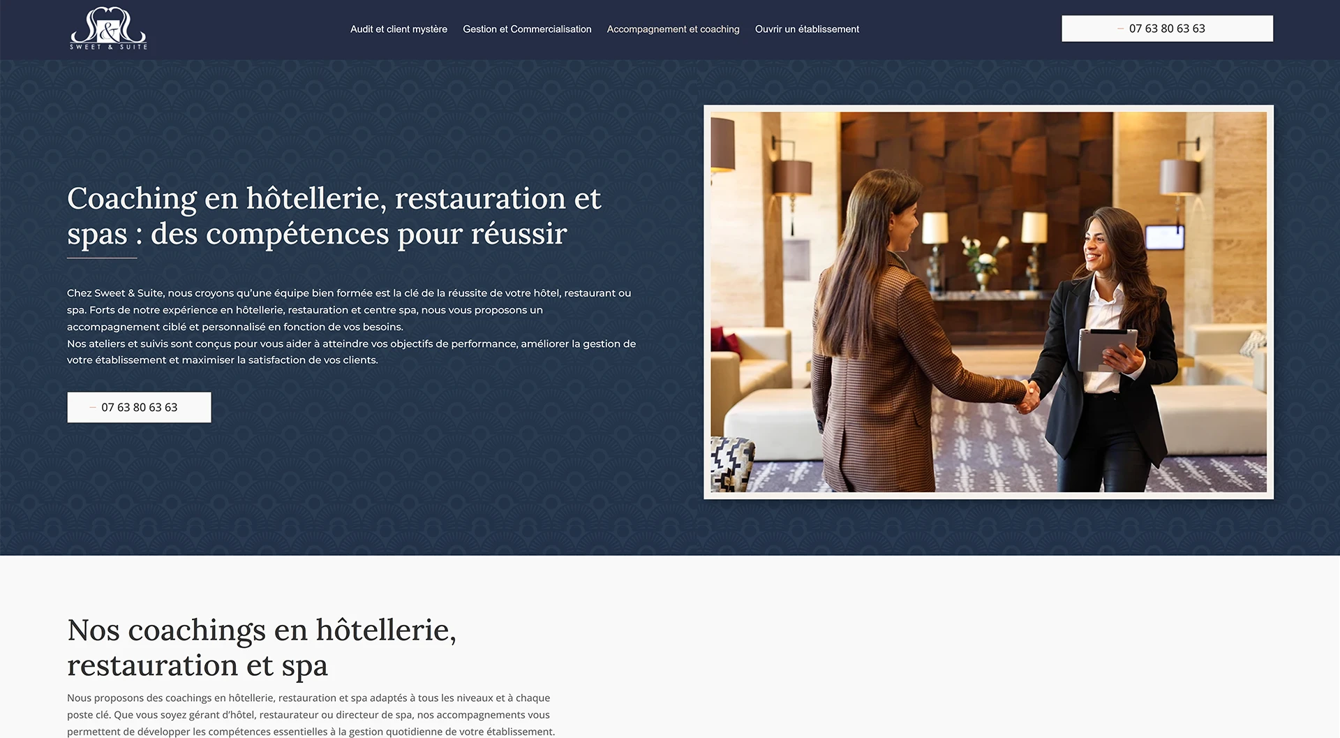 Chaque page est pensée pour convaincre et rassurer, tout en positionnant Sweet & Suite comme un pilier du conseil hôtelier à Paris et en régions.